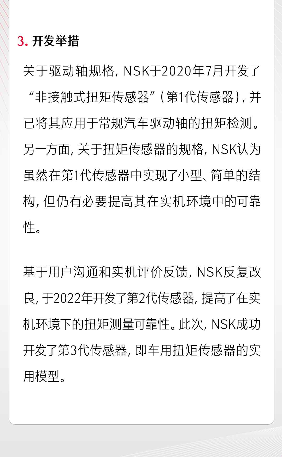 NSK成功開發(fā)車用磁致伸縮扭矩傳感器實(shí)用模型