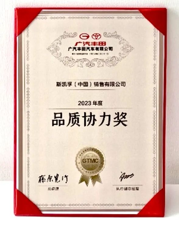 備受認可 | 斯凱孚連續(xù)三年榮獲廣汽豐田“品質協(xié)力獎”