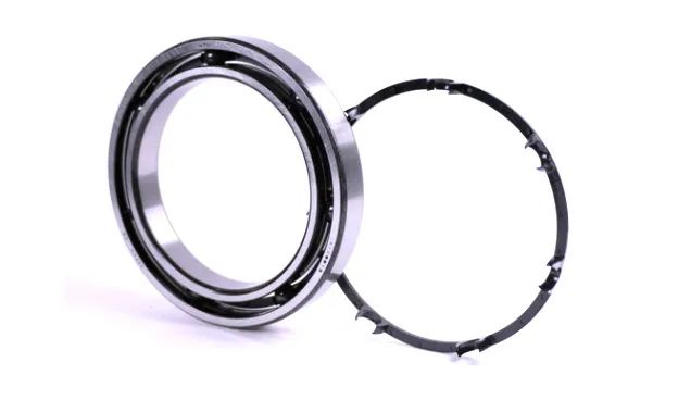 減少滾動體和保持架兜孔的個數(shù),以降低軸承高速旋轉(zhuǎn)時的離心力。同時,合理設(shè)計保持架形狀,嚴(yán)格選取高強(qiáng)度的保持架材料,最大程度地抑制因離心力導(dǎo)致的保持架變形。通過這些舉措,內(nèi)徑50—90mm的大徑軸承可實現(xiàn)dmn=150萬。