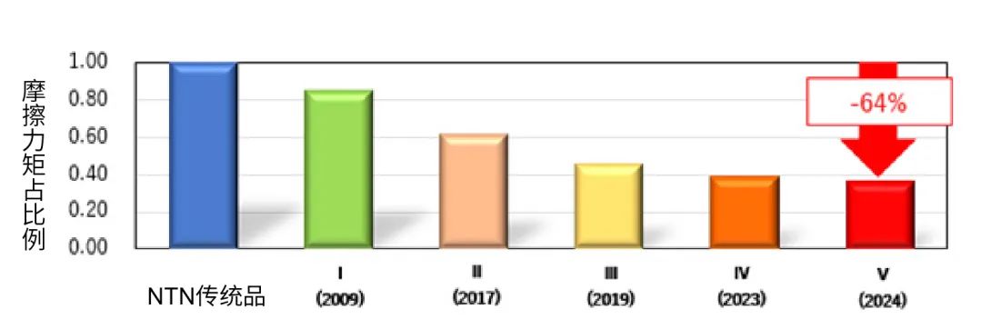 比NTN傳統(tǒng)品最高減少約64% 的滾阻,且提高約0.75%的電能效率