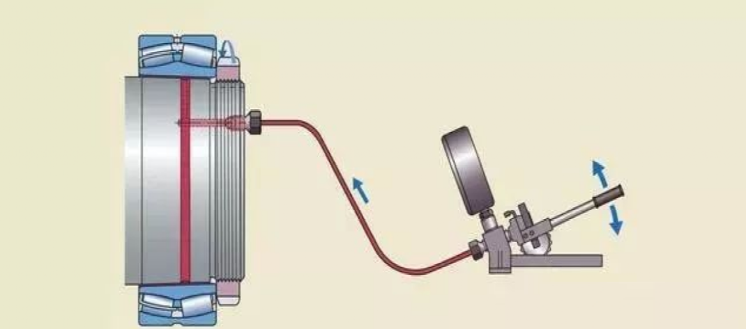 注油法的工作原理是:液壓油在高壓下通過(guò)油孔和油槽,注入軸承和軸徑之間的配合面,形成一層油膜。油膜將配合面分開(kāi),使得配合面之間的摩擦大幅減少。這種方法通常用于直接把軸承安裝在圓錐形軸徑上的情況。必須的油孔和油槽應(yīng)是整體軸設(shè)計(jì)的一部分。如果緊定套和退卸套,已加工有油孔油槽,這種方法也可用于將軸承安裝在緊定套或退卸套上。