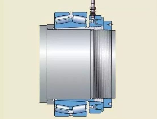 注油法 注油法的工作原理是:液壓油在高壓下通過(guò)油孔和油槽,注入軸承和軸徑之間的配合面,形成一層油膜。油膜將配合面分開(kāi),使得配合面之間的摩擦大幅減少。這種方法通常用于直接把軸承安裝在圓錐形軸徑上的情況。必須的油孔和油槽應(yīng)是整體軸設(shè)計(jì)的一部分。如果緊定套和退卸套,已加工有油孔油槽,這種方法也可用于將軸承安裝在緊定套或退卸套上。